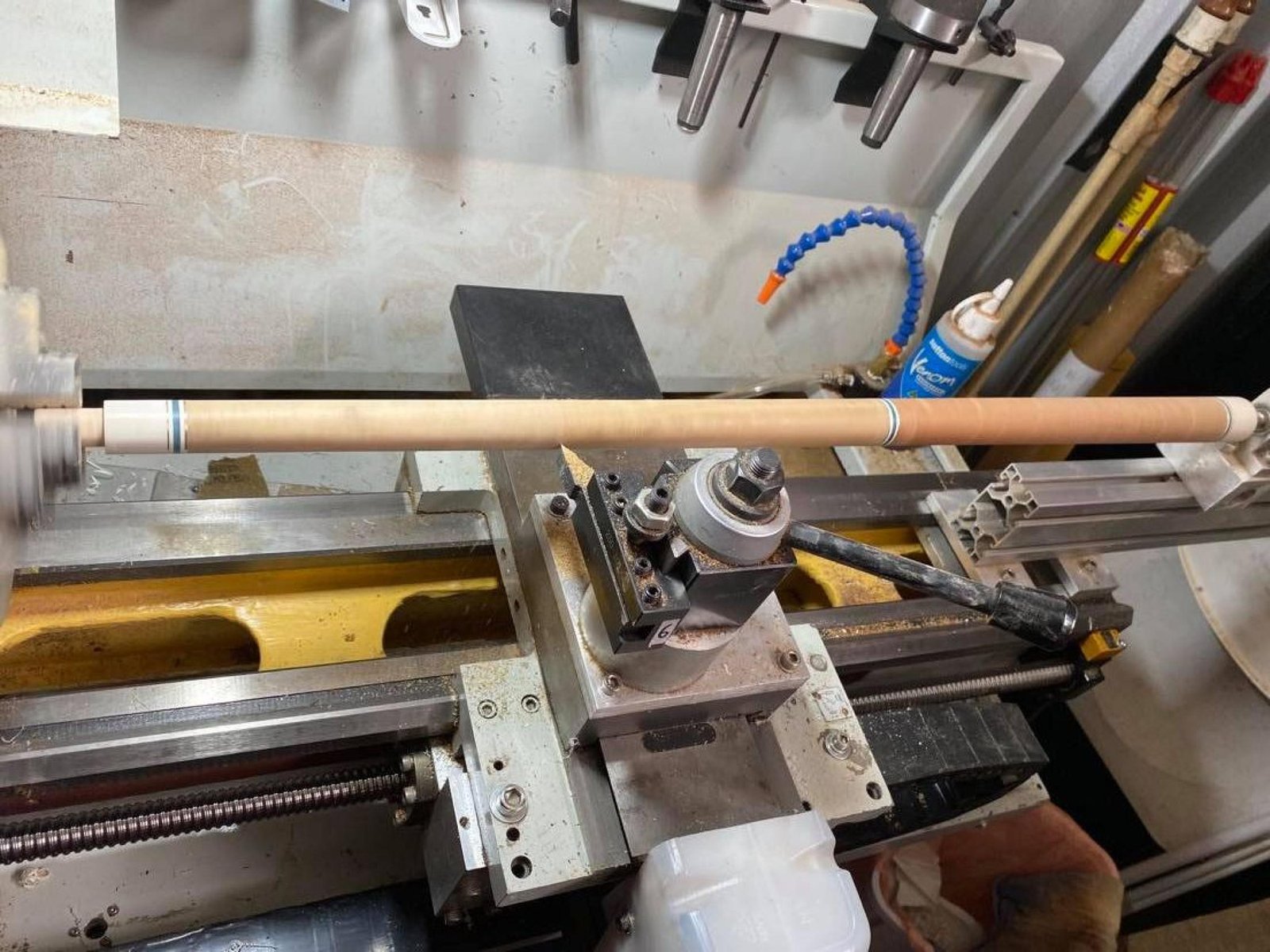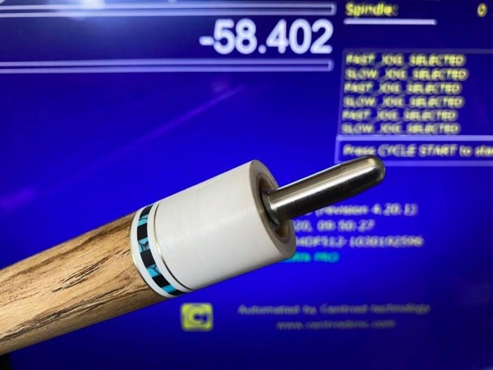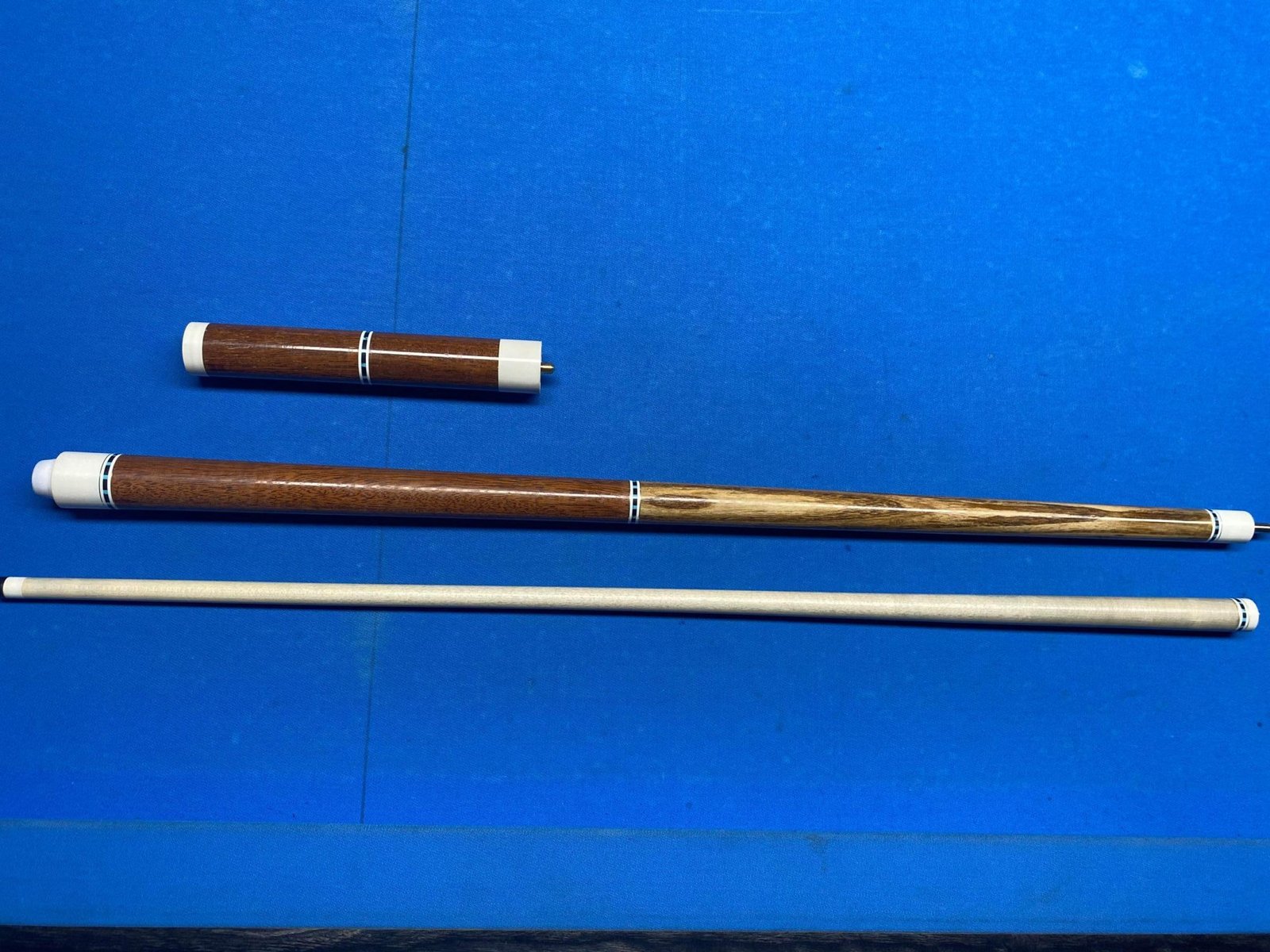 Shaft is AA+ Canadian Rock Maple, counterbored to reduce deflection, rings to match butt. Ferrule is Tomahawk, and the tip is an Ultraskin medium 12.65mm.