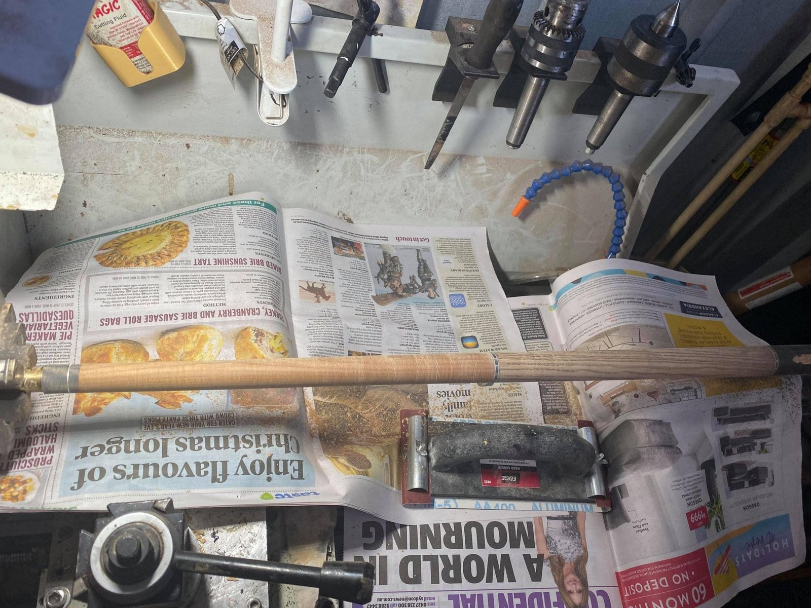 I was planning on adding Ebony points, but the forearm looked so good in the Roasted Curly Maple that I left it plain.