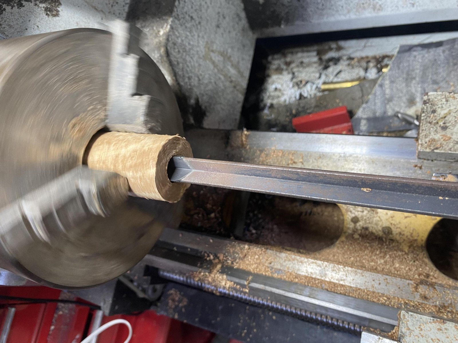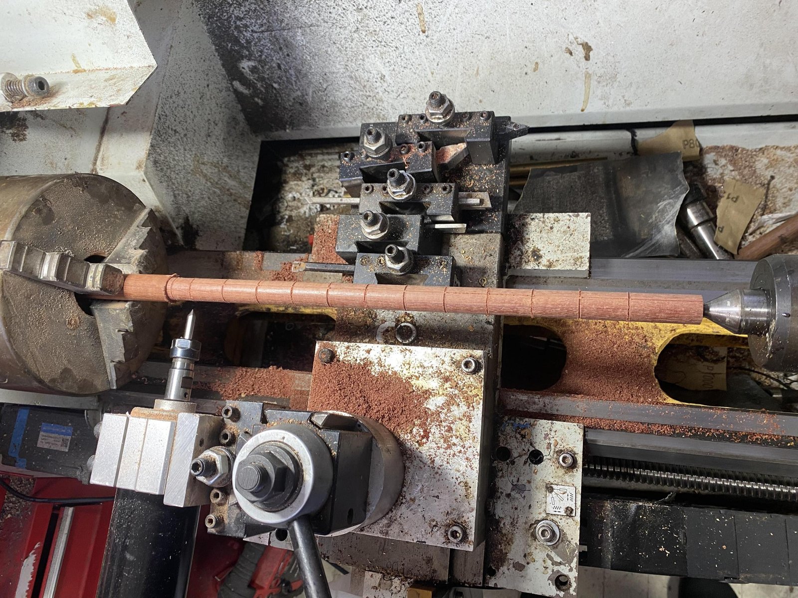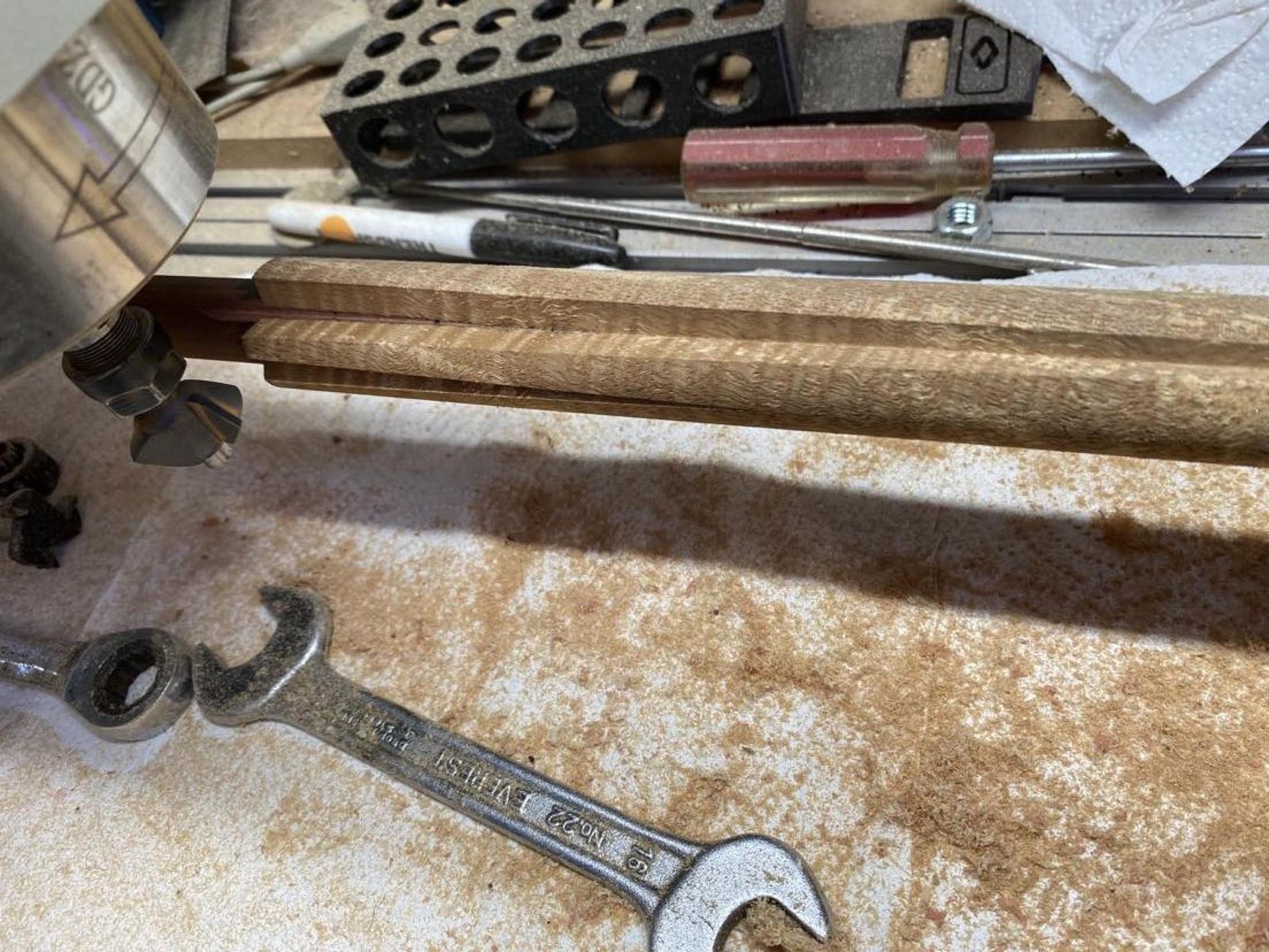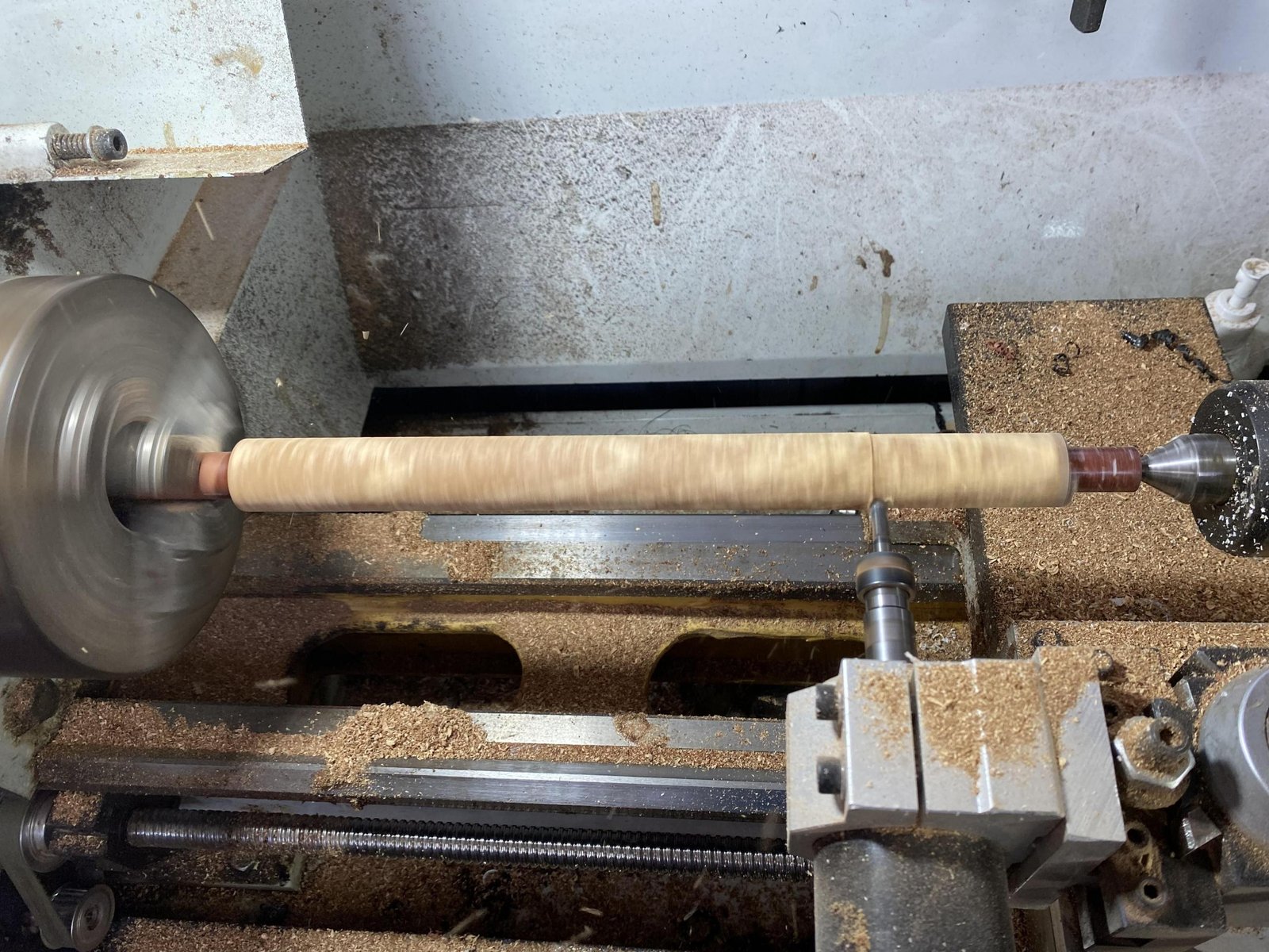 Handle is Jarrah and butt sleeve is Ebony with windows and inlays.